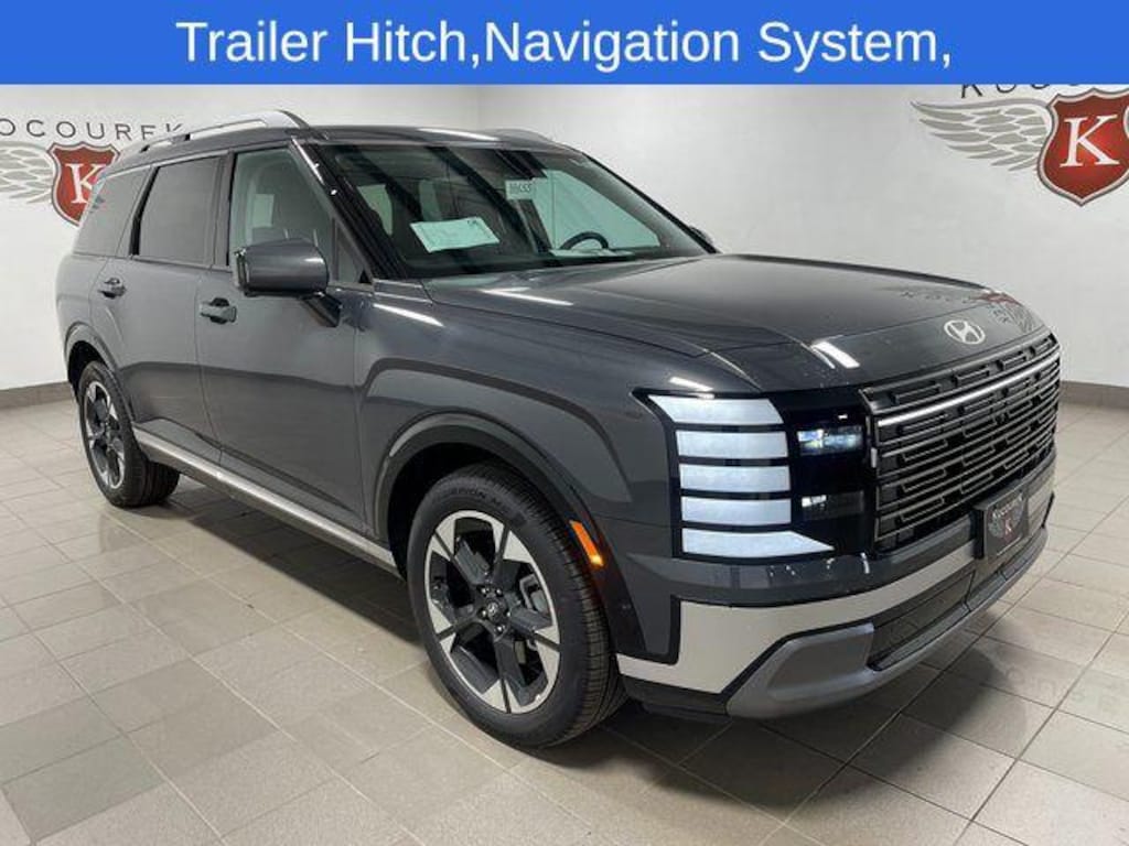 Trailer Hitch, Palisade Limited, 4D Sport Utility, V6, 8-Speed Automatic, AWD, Ecotronic Gray Pearl, Black Leather, Active Cruise Control, Navigation System.